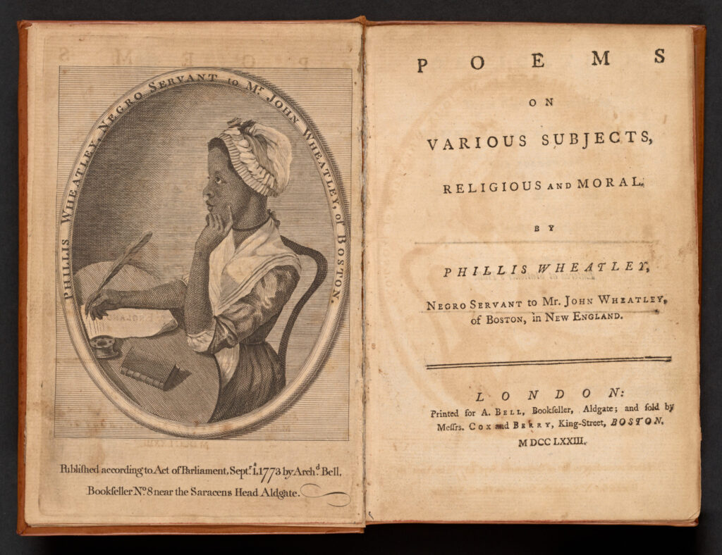 First published in 1773, while she was enslaved by John and Susanna Wheatley of Boston, Phillis Wheatley’s Poems on Various Subjects Religious and Moral was the first book of poetry published by a Black American. The book went through many editions between the 18th and early 20th centuries, reflecting its landmark status, importance to readers, and its significance in literary and cultural history.